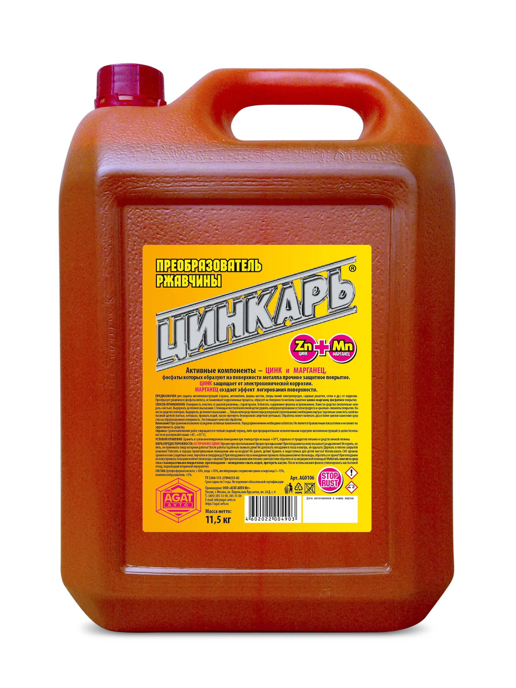 Преобразователь ржавчины ЦИНКАРЬ AGAT Avto, (канистра) 11.5кг (AG0106)