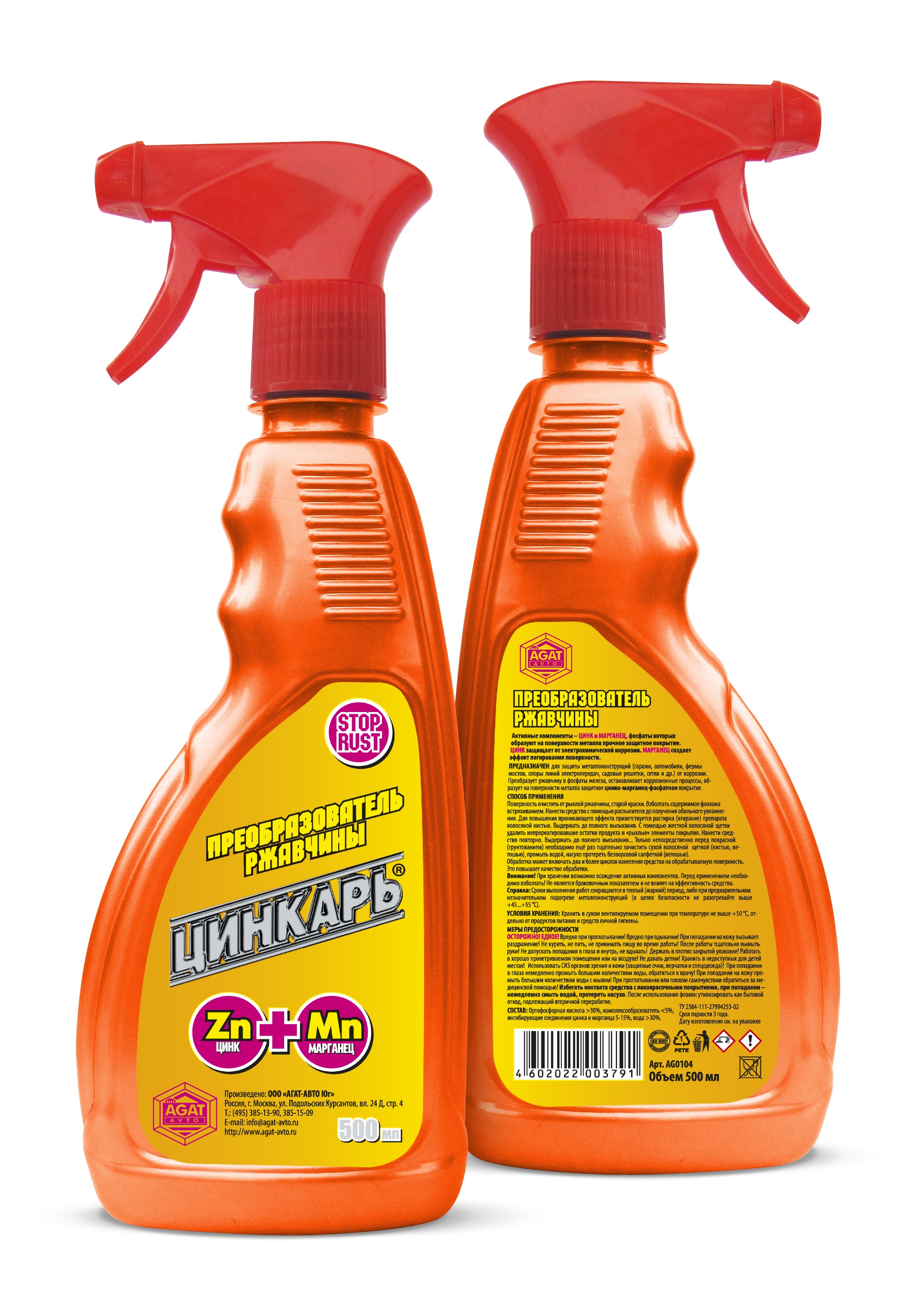 Преобразователь ржавчины ЦИНКАРЬ AGAT Avto, (триггер) 500мл (AG0104)