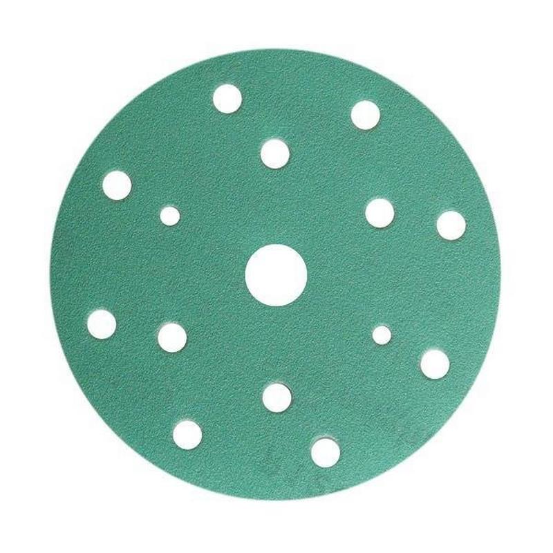 Шлифовальный круг SunMight на липучке, диаметр 150 мм, 15 отверстий, зеленый. Износостойкий абразивный материал на бумажной основе премиум класса, изготовлен с использованием высококачественного абразивного минерала (оксид алюминия), латексной бумаги и связующей смолы высокой прочности. Обладает низкой забиваемостью и высокой износоустойчивостью. Предназначен для сухого шлифования поверхностей средней жесткости, лакокрасочных материалов и твёрдой древесины.