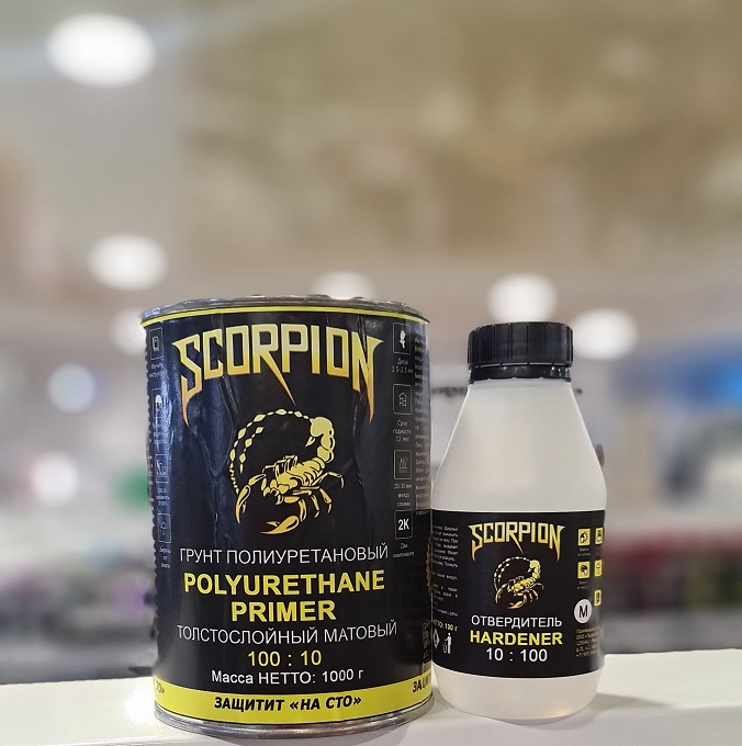Двухкомпонентый полиуретановый грунт для металла автомобиля SCORPION А+Б (1000 гр.+120 гр.)