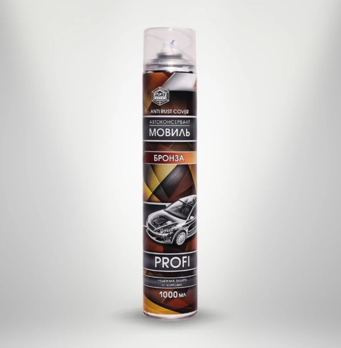Автоконсервант «Мовиль-Бронза» в аэрозольной упаковке особенно удобен для обработки труднодоступных мест. Средство обладает хорошей проникающей и пропитывающей способностью. Допускается наносить автоконсервант в скрытые полости, ранее обработанные консервирующими составами, на ржавую поверхность, а также на заводские антикоррозионные покрытия. Состав содержит наполнитель – металлический порошок, повышающий прочность и усиливающий протекторные свойства защитной пленки.